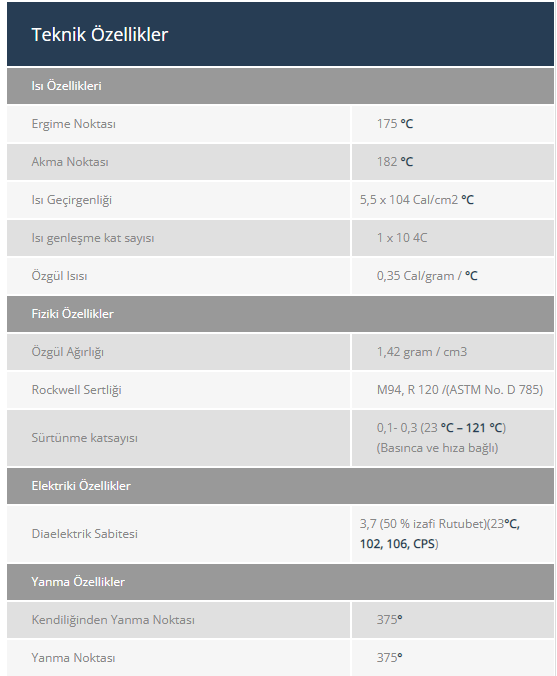 - Diğer plastiklerin karşılayamayacağı, sürekli azalıp, artan yükler veya sıcaklıklar altındaki sağlamlığı.