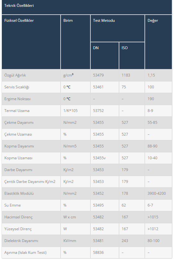 Ambalaj, tekstil, metal işleme, deri, kimya, inşaat, vb. tüm makinelerde, metal malzemesinin yerine başarıyla kullanılmaktadır. Hafif olması, korozyona dayanması, darbe dayanımı ve üstün mekanik özellikleri ile bütün dünyada, demiryollarında ve trenlerde güvenle kullanılmaktadır.